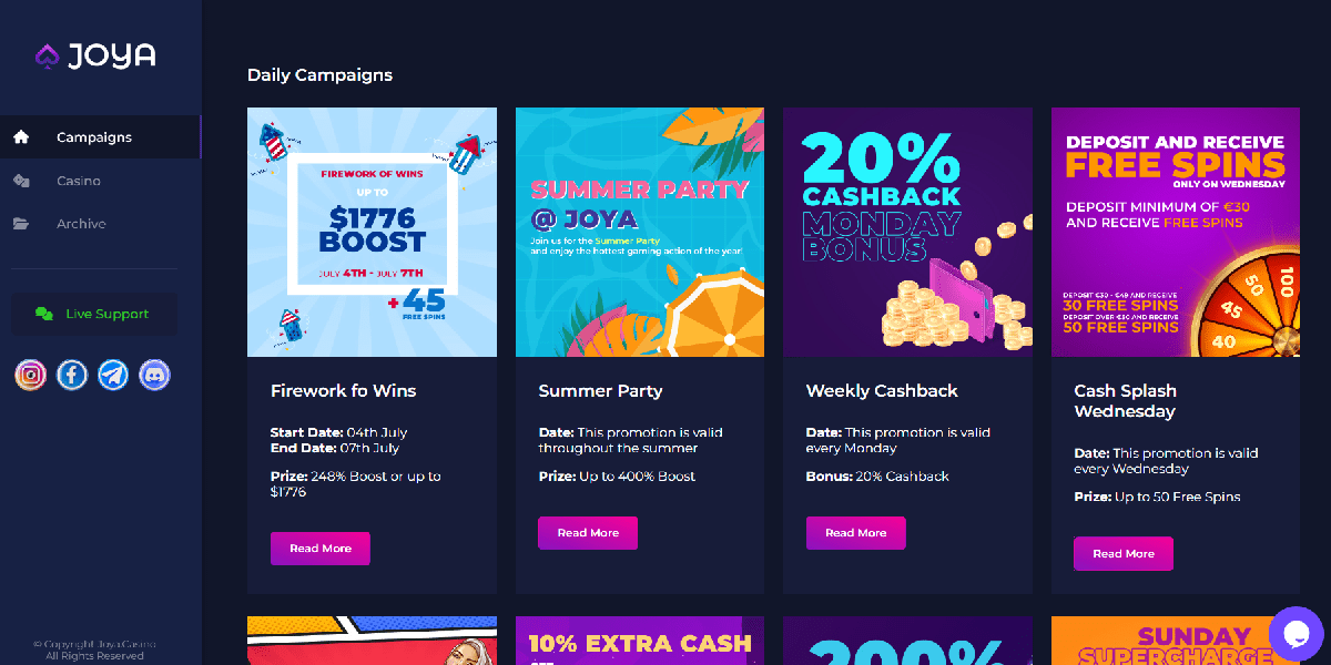Wenn Sie eine aufregende neue iGaming-Plattform suchen, die lebendig, entspannt und voller Funktionen ist, dann ist Joya Casino vielleicht das Richtige für Sie. Es wurde gerade erst veröffentlicht und bietet jede Menge fantastische Anreize. Aber in der iGaming-Branche hat es bereits für Aufsehen gesorgt und sich einen Namen gemacht.