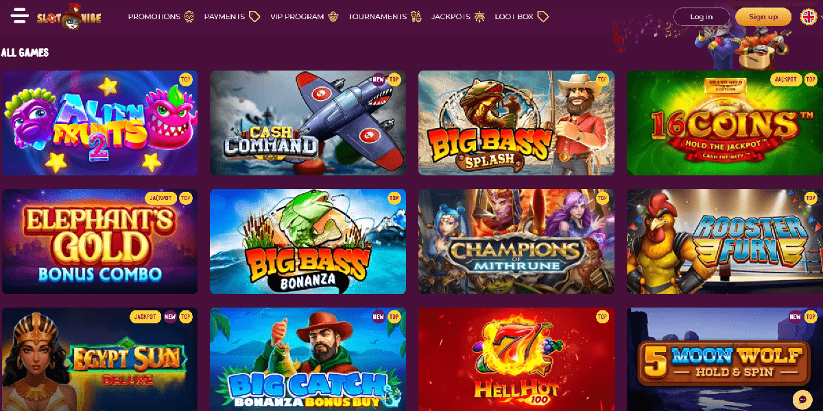 Mit Hunderten von Spielautomaten zur Auswahl, darunter Video-, Jackpot- und Megaways-Spiele, wird das SlotVibe-Casino mit Sicherheit die Spielbedürfnisse jedes Spielers erfüllen.