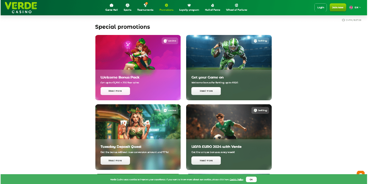Betsoft, Evolution, iSoftBet, Play'N Go, Pragmatic Play und Quickspin sind nur einige der bekannten Entwickler, deren Bibliotheken Sie im Verde Casino finden können. Darüber hinaus finden Sie Produkte von kleineren, aber innovativen Anbietern wie Endorphina, Gamzix, High 5 Games, Push Gaming, Spribe und unzähligen anderen.