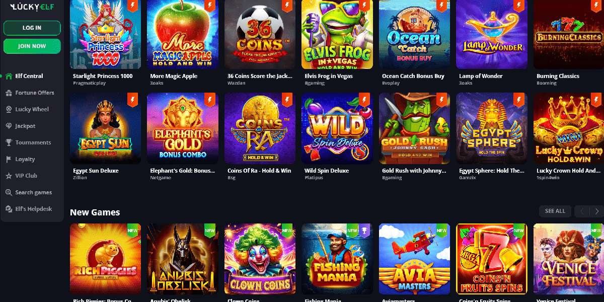 The vast bulk of LuckyElf's more than 4,000 games are slot machines. Brand new games including Sticky Bombs, Nitropolis 3, Book of Ba'al, and Knight Rider are available, along with other famous Megaways titles like Doggy Riches, Howling Wolves, Big Bucks Bandits, and others.
