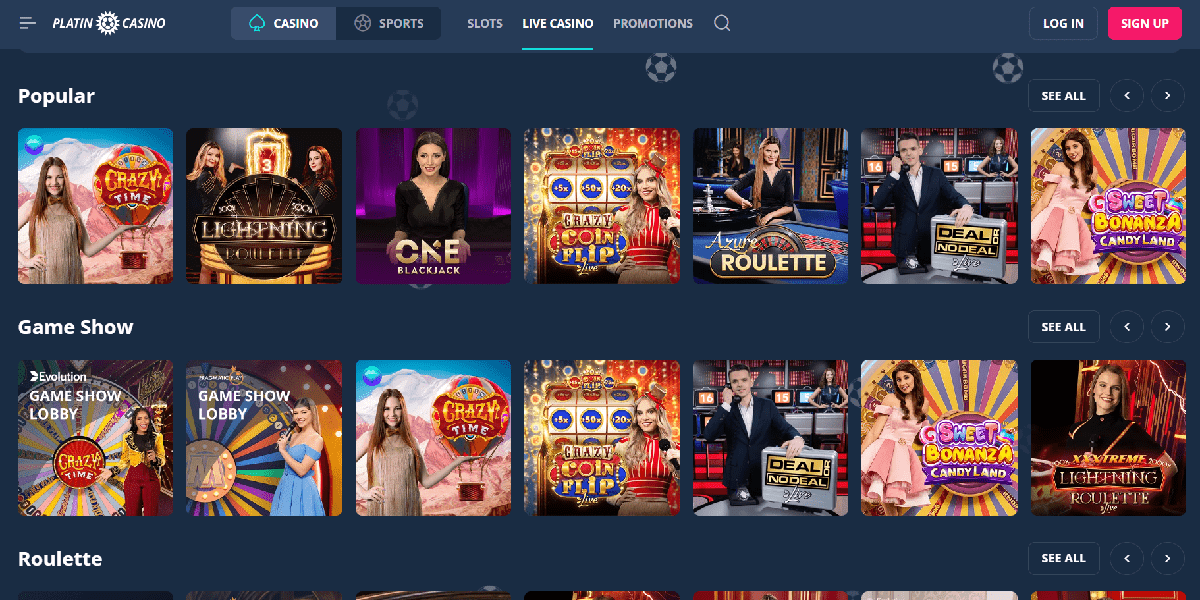Platincasino hat zweifellos dafür gesorgt, dass die Spieler eine Fülle von Optionen haben, wenn es darum geht, auszuwählen, was sie spielen möchten. Derzeit sind im Casino 4932 Spiele verfügbar, und es werden ständig neue Spiele hinzugefügt. Spielautomaten, Tischspiele, Videopoker und über 200 Live-Dealer-Spiele sind bei Platincasino verfügbar. Sie können alle Spiele kostenlos spielen, sodass Sie kein Risiko eingehen, echtes Geld zu verlieren, weil Sie nicht sehr gut darin sind. Außerdem gibt es eine Menge Abwechslung.