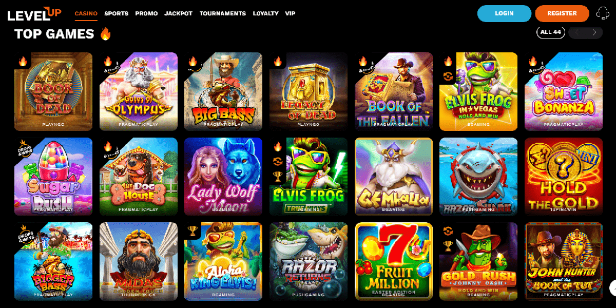With the support of a dozen different game developers, both large and little, LevelUp Casino guarantees that you will have no shortage of exciting titles to choose from. Select from the following menu items: All Games, Trending, New, Slots, Bonus Buy, Table, and Jackpot. Using the search box is the only way to see if the live casino games or video poker are available.