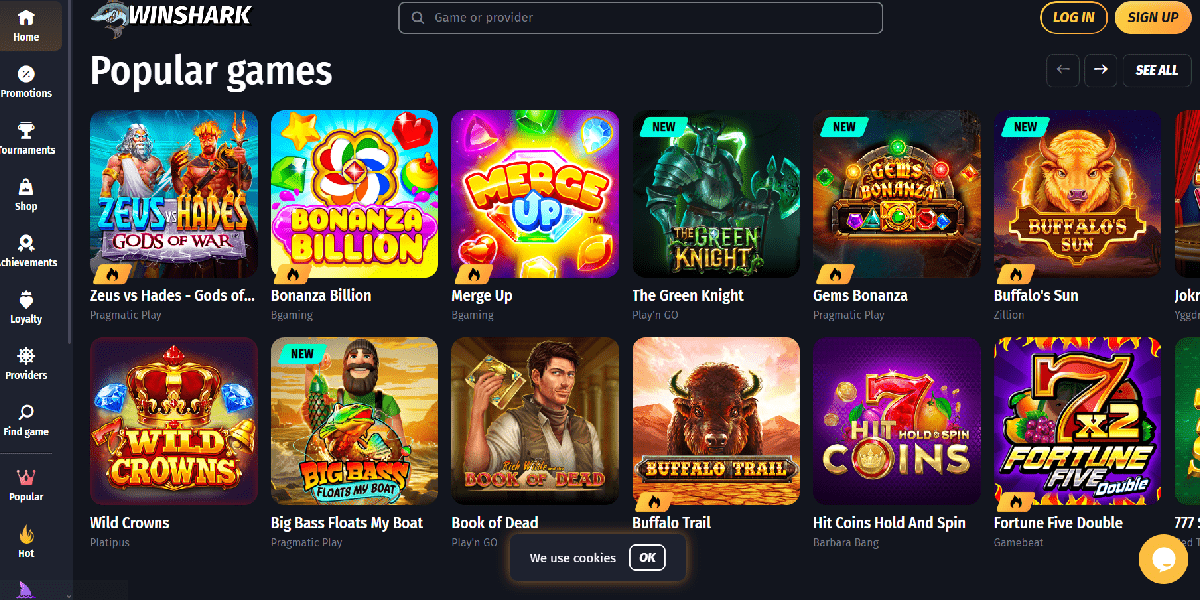 • Which game providers does WinShark Casino collaborate with, and does it include games from smaller developers?