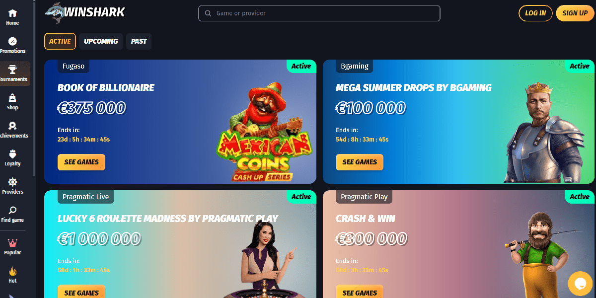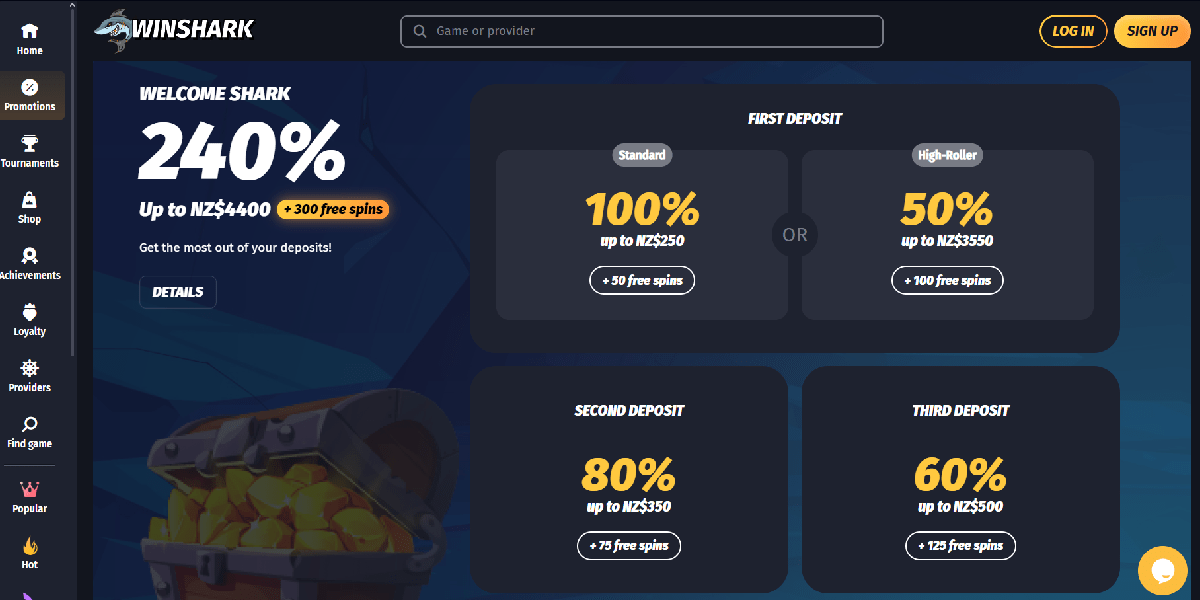 WinShark Casino offers several attractive promotional offers, including a Loyalty Scheme that rewards its most loyal clients, weekly specials, and an enticing Welcome Pack.